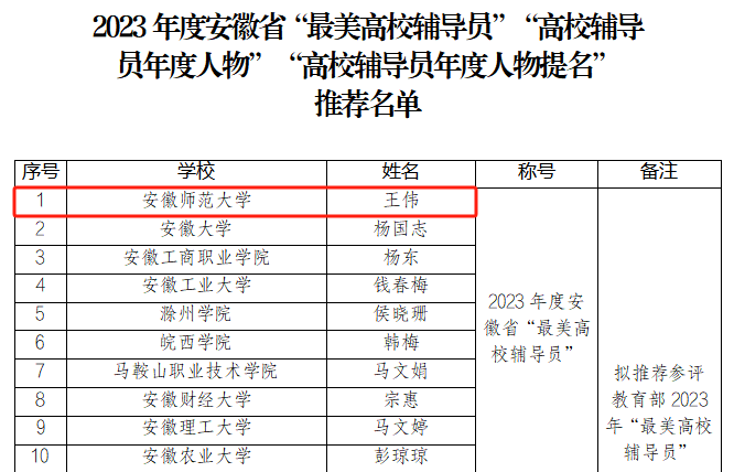 我校辅导员王伟获评2023年度“安徽省最美高校辅导员”