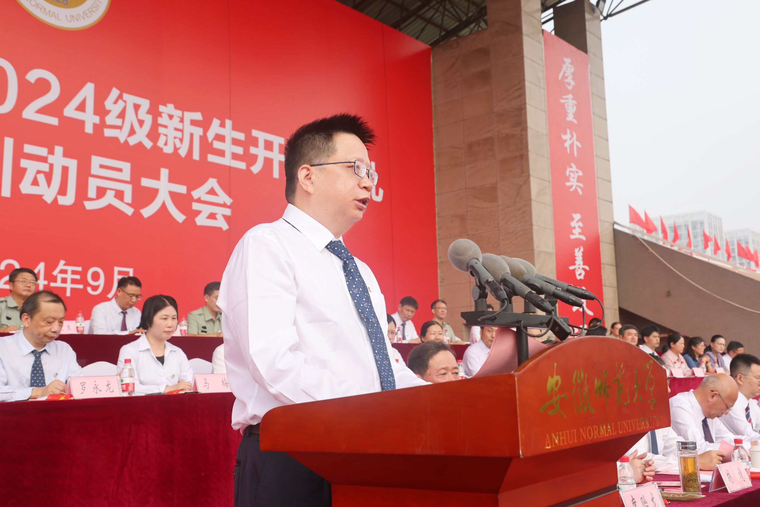 “只要我们专心于学业,不虚度年华,掌握知识,培养能力,为未来的事业和人生奠定扎实的基础,就一定会拥有灿烂而美好的明天。”这是朱志荣对新生的真诚祝福与殷切期盼。安徽师范大学是各位新生的新起点,也是每位师大人梦想腾飞的地方。“我相信,各位同学将不虚此行,从这里走向光明的未来!”朱志荣在2024级新生开学典礼上对新生给予了积极的鼓励。(采访/李家榕 邹晓嘉)